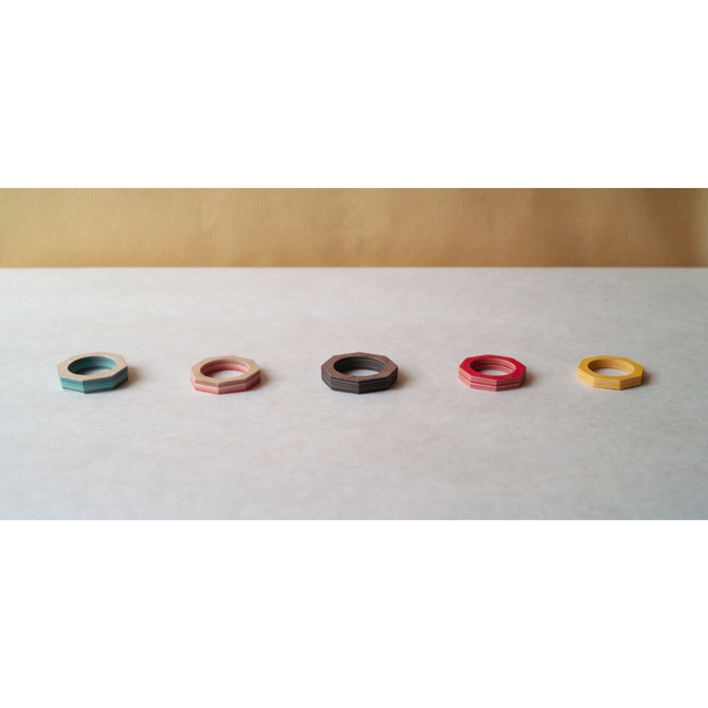 紙を積層させた素材。組み合わせによって様々な色や表情を生み出すことができます。