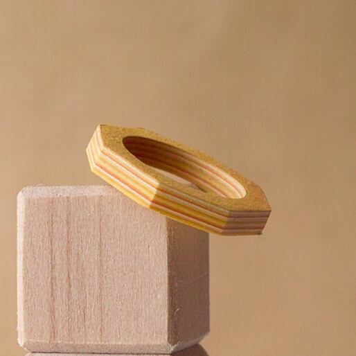 紙を積層させた素材。組み合わせによって様々な色や表情を生み出すことができます。